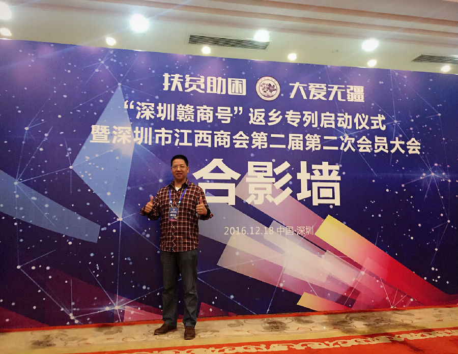 2016年12月18日,“深圳赣商号”返乡专列启动仪式暨深圳市江西商会第二届第二次会员大会在深圳五洲宾馆隆重举行,赣深两地领导,兄弟商会代表和商会会员共400余人出席了此次活动。