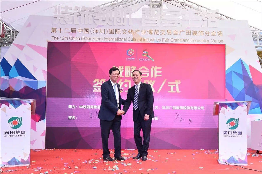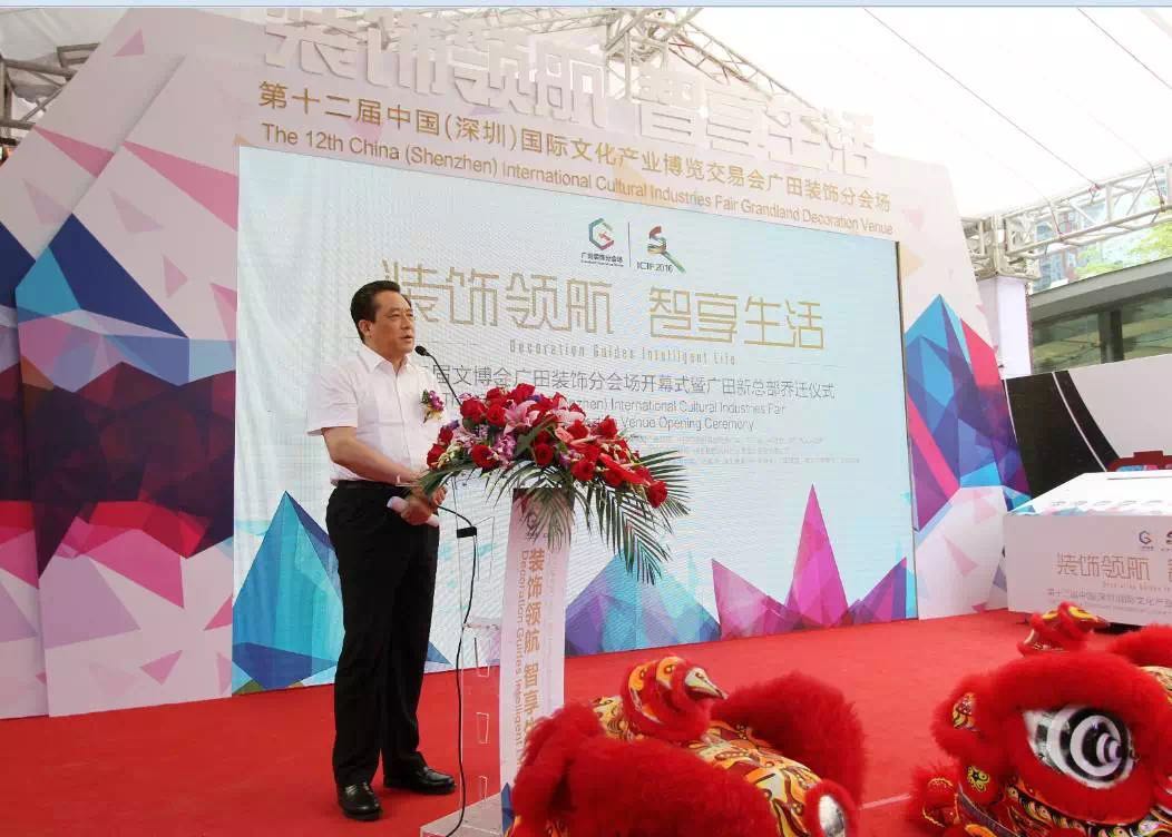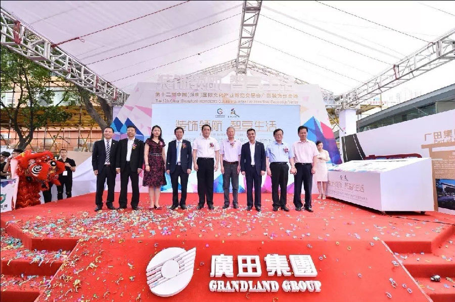 盛饰文博,华彩启幕。2016年5月13日上午,第十二届中国(深圳)国际文化产业博览交易会广田分会场在广田集团新总部大楼盛华大厦隆重开幕。本届广田文博盛典,适逢总部华厦新成,借此乔迁之喜,广田分会场汇聚了全球顶级设计师、行业专家学者、家装达人智囊团共同献上精彩纷呈的会展盛宴,全面展示城市建筑与人居之美,开启了文博会广田分会场创意城市、绿色装饰的精品之旅。深圳市罗湖区区委书记贺海涛、中铁四局集团有限公司总经理王传霖、中国建筑装饰协会会长李秉仁等政府及行业领导、专家学者,以及战略合作伙伴、中外顶级建筑设计师们出席开幕盛典,共同见证了广田这一辉煌时刻。