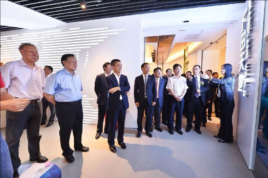 广田创始人、广田控股集团董事长叶远西陪同开幕式嘉宾参观广田新总部大楼展厅
