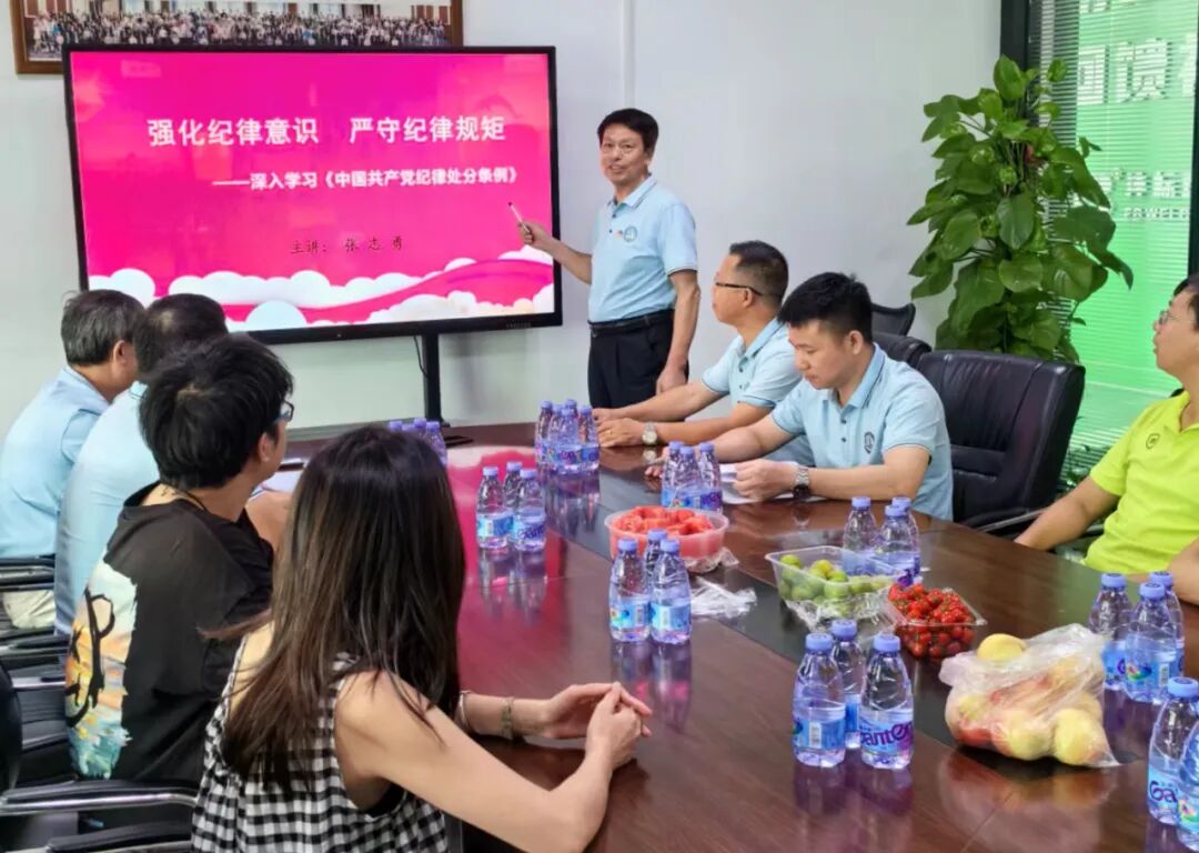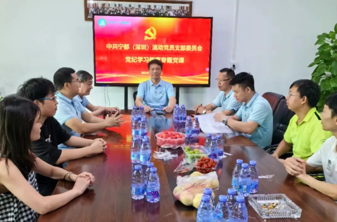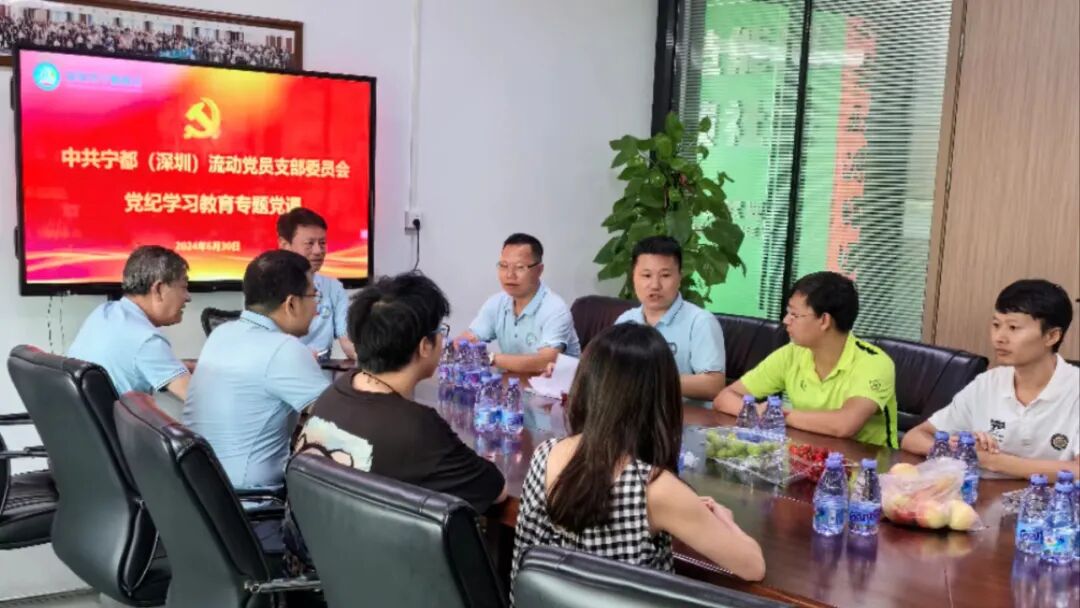2024年6月30日上午,中共宁都(深圳)流动党支部委员会在商会执行会长单位“沣标公司”组织开展“七一” 党纪学习教育专题党课。支部书记张志勇主持并讲党课。