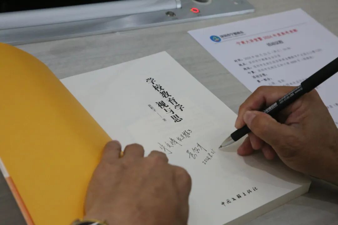 表彰环节结束后,开展了《宁商大讲堂》活动。商会高级顾问、深圳市教育科学研究院原教育科研管理办公室主任黄积才带来“教育赋能生命成长”主题讲座,从教育、生命、成长、赋能四个方面,给大家带来了一堂融知识性、实践性、趣味性于一体的教育专题讲座,循序渐进地引导大家学习了解了有教无类、点石成金、启发式教学、因材施教、自主学习、知行合一等教育理念和智慧,让大家收获满满。讲座最后,黄老师现场送给大家10本书,鼓励大家不断学习、完善自我。