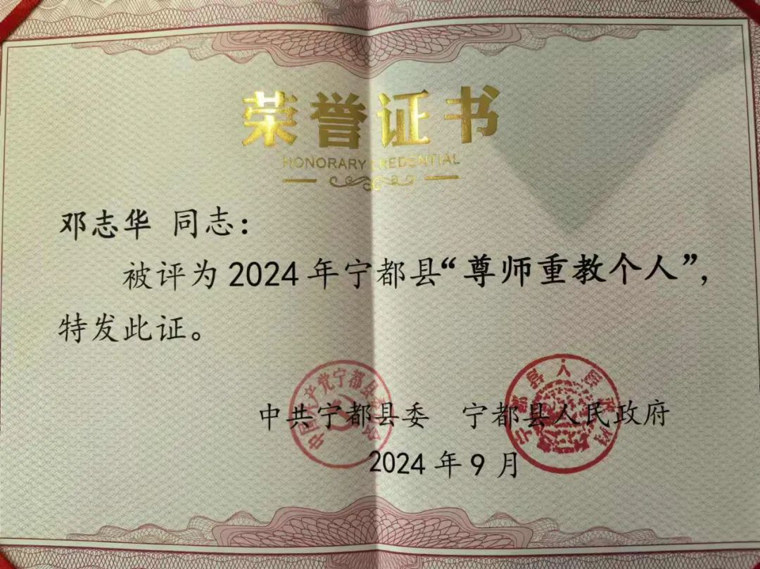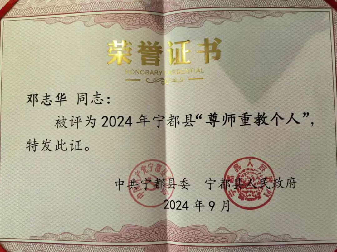 我会会长邓志华荣获“尊师重教个人”荣誉。