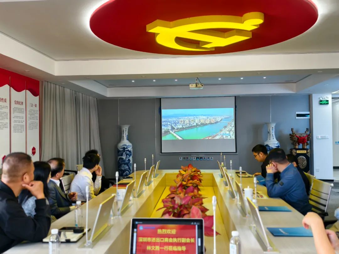 2024年12月2日上午,深圳市进出口商会执行副会长兼秘书长林文胜,深圳市女企业家商会执行副会长兼秘书长任静,深圳市进出口商会常务副秘书长胡婷、会员部主任凌超杰、杭州银行坂田支行相关负责人罗定邦、陈冠杰等一行来访交流。我会会长邓志华热情地接待林秘书长和任秘书长一行,我会执行会长邓荣,流动党支部书记张志勇,顾问曾云峰,副会长刘诺、宋爱生,执行秘书长黄妮妮,深圳市赣州商会秘书长刘汉银等共同参加此次交流活动。